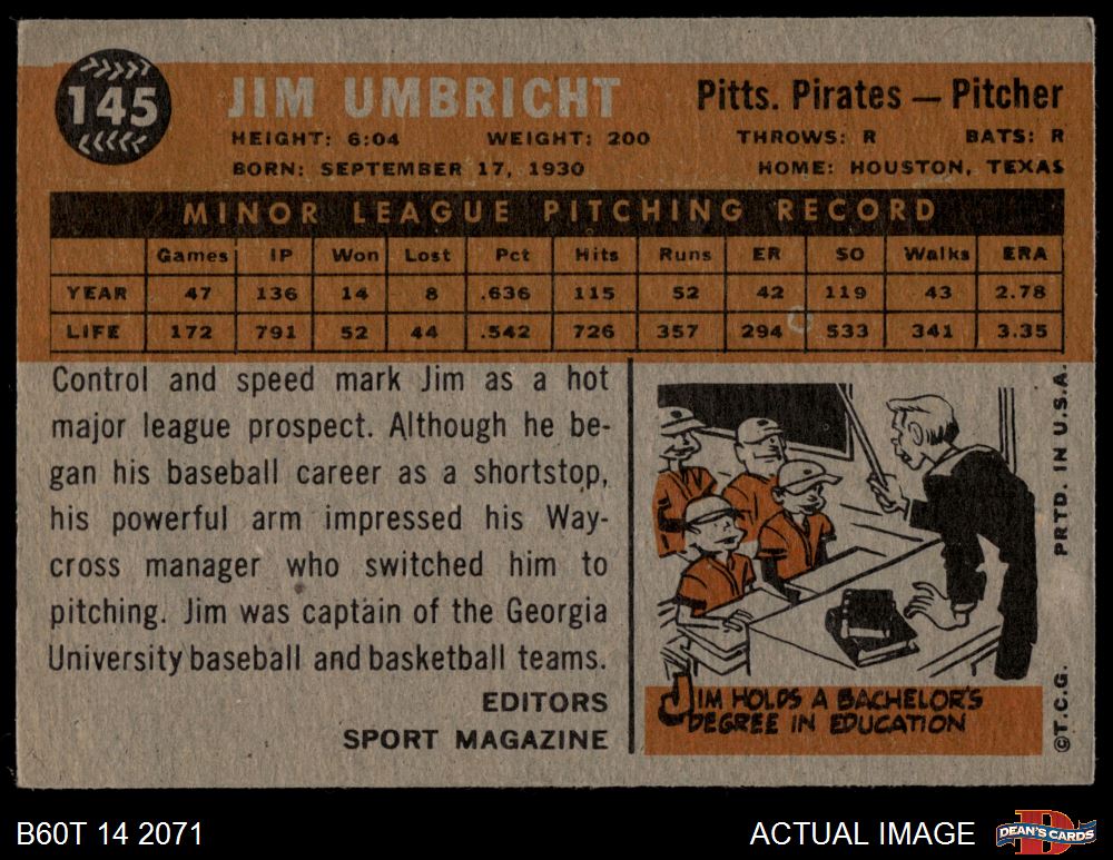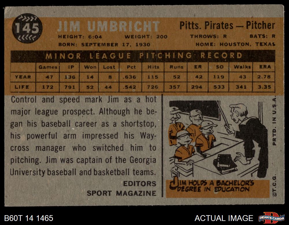 1960 Topps #145 - Jim Umbricht Rookie Star 3 - VG
