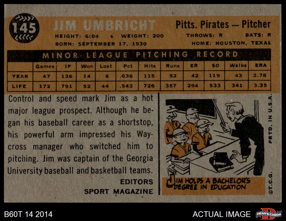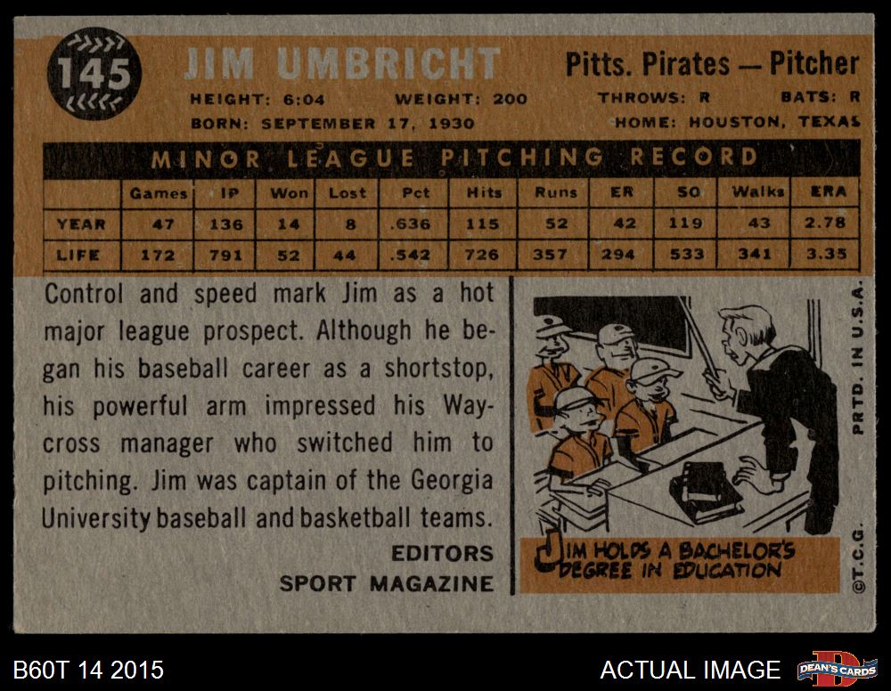 1960 Topps #145 - Jim Umbricht Rookie Star 4 - VG/EX
