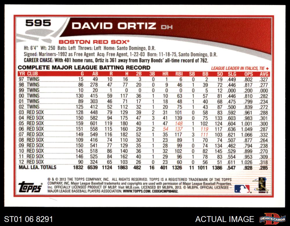 2013 Topps #595 David Ortiz 8 - NM/MT