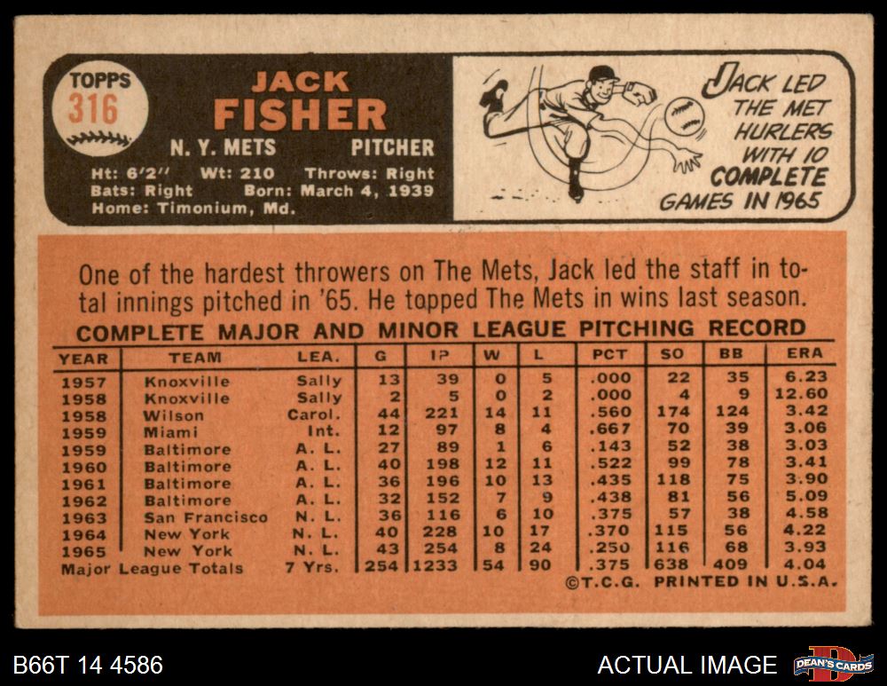 1966 Topps #316 Jack Fisher 2 - GOOD