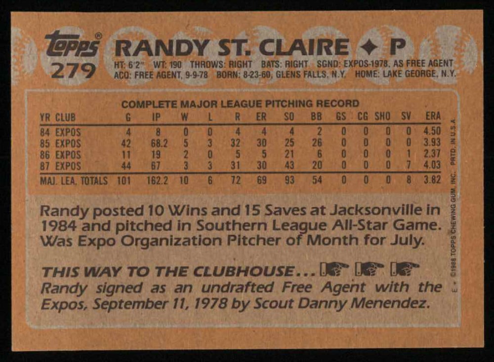 1988 Topps #279 Randy St.Claire
