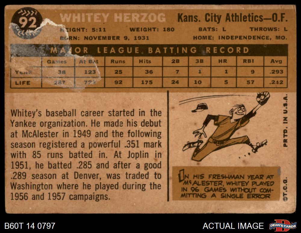 1960 Topps #92 Whitey Herzog 1.5 - FAIR
