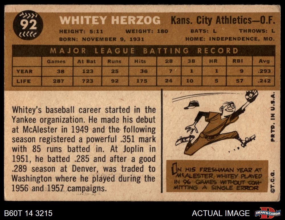 1960 Topps #92 Whitey Herzog 2 - GOOD