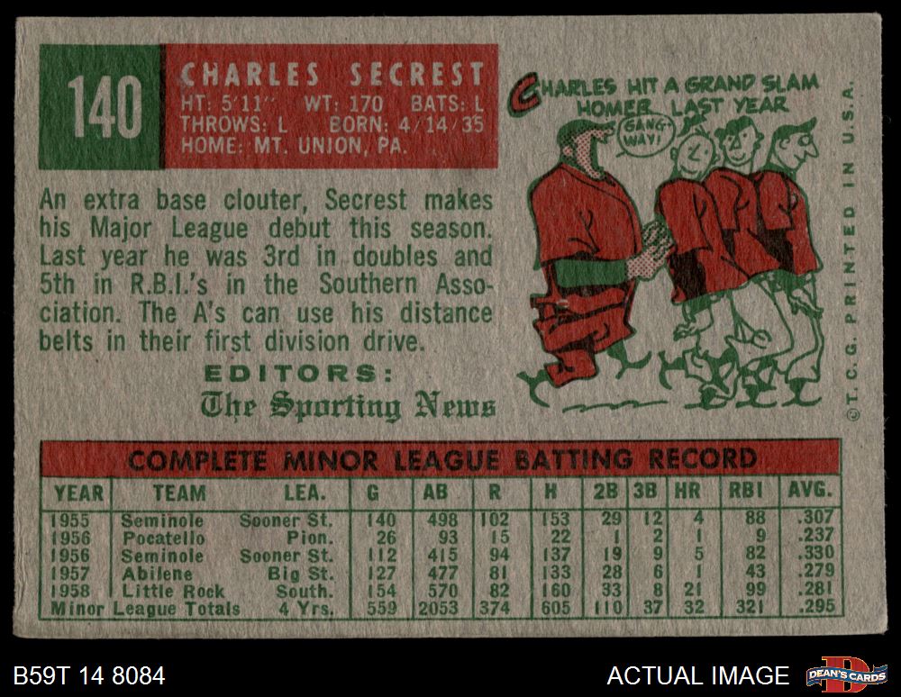 1959 Topps #140 Charlie Secrest 4 - VG/EX