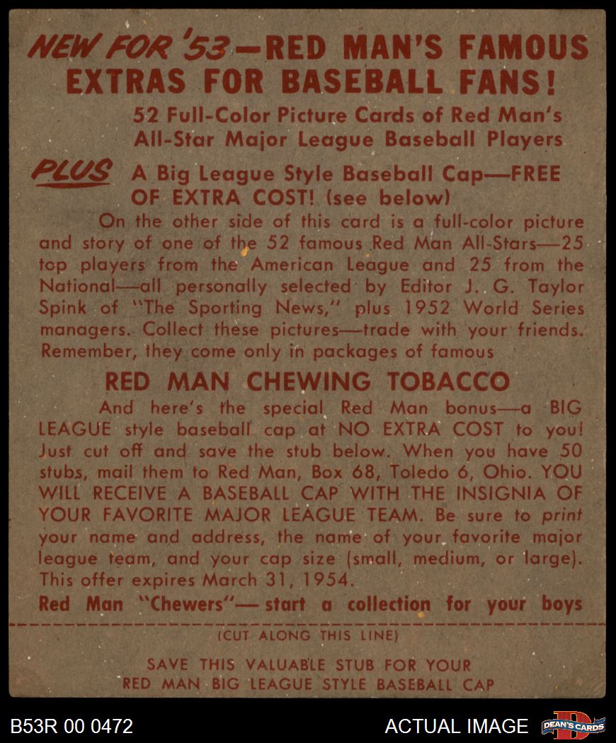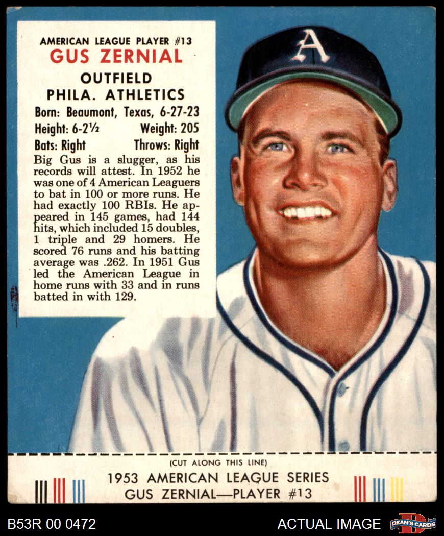 1953 Red Man #13 AL Gus Zernial 3 - VG