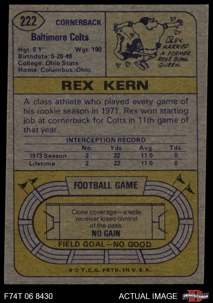 1974 Topps #222 Rex Kern 2 - GOOD