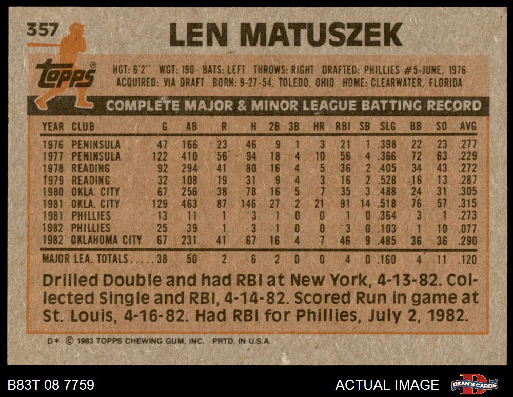 1983 Topps Baseball Cards (8,396 available)1983 Topps Phillies (392 available)
