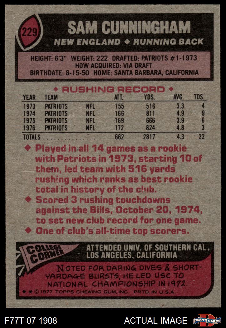 1977 Topps #229 Sam Cunningham 6 - EX/MT