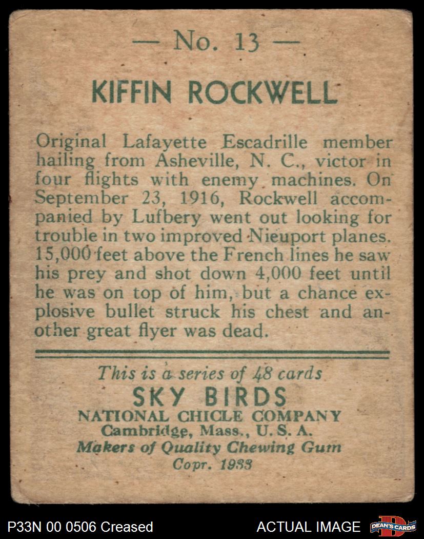 1933 National Chicle Sky Birds #13 Kiffin Rockwell Front Thumbnail