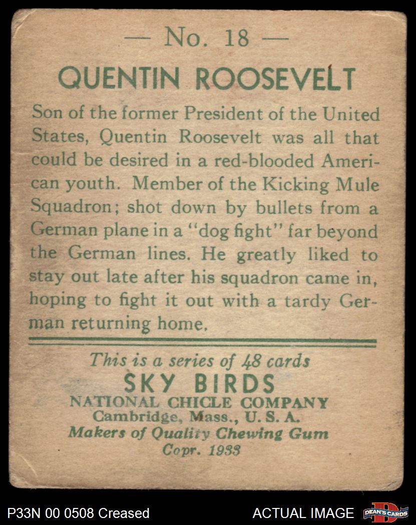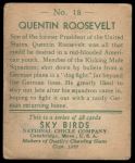 1933 National Chicle Sky Birds #18 Quentin Roosevelt Front Thumbnail