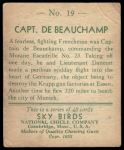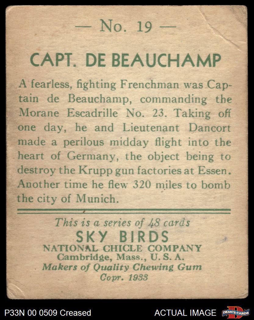 1933 National Chicle Sky Birds #19 Captian DeBeauchamp