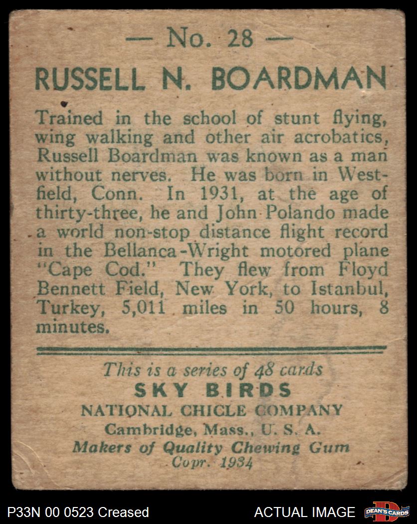 1934 National Chicle Sky Birds #28 Can read series of 48 or 144 cards on Back Russell Boardman 1.5 - FAIR