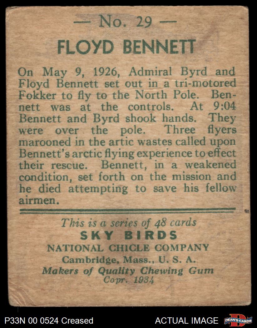 1934 National Chicle Sky Birds #29 Floyd Bennett