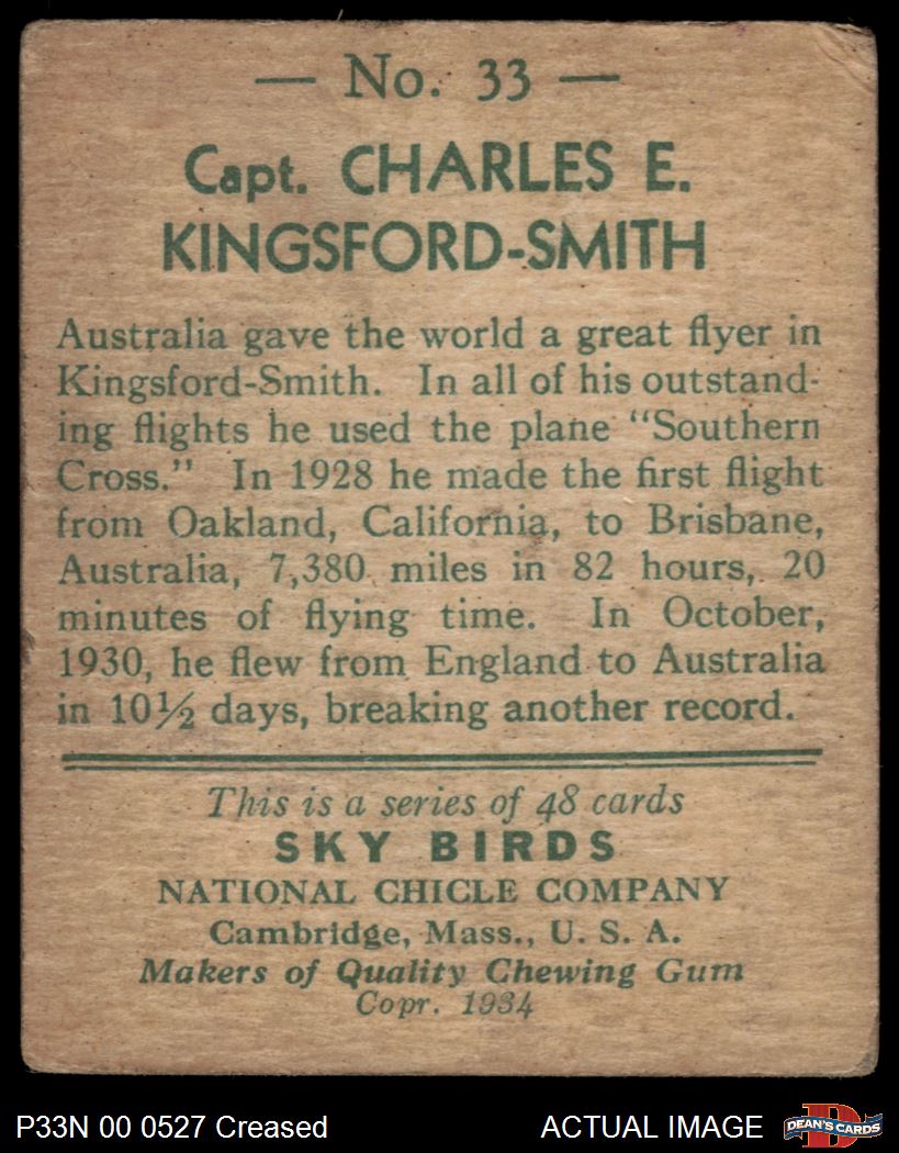1934 National Chicle Sky Birds #33 C Kingsford-Smith
