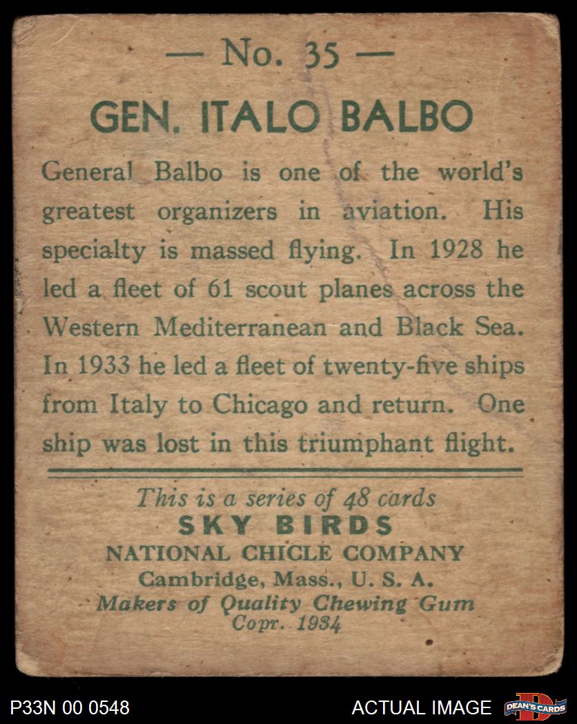 1934 National Chicle Sky Birds #35 Can read series of 48 or 144 cards on Back Italo Balbo 1.5 - FAIR