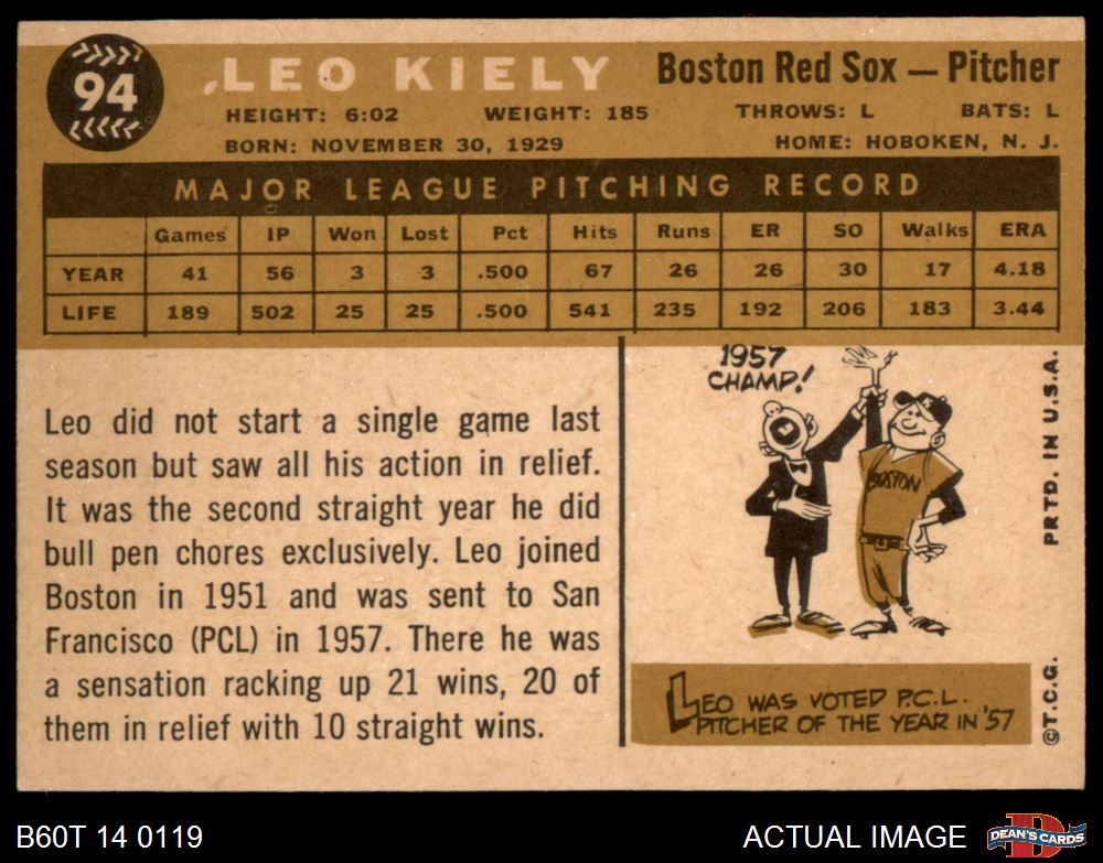 1960 Topps #94 Leo Kiely 5 - EX