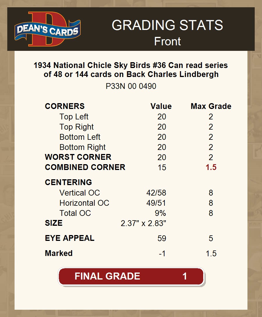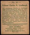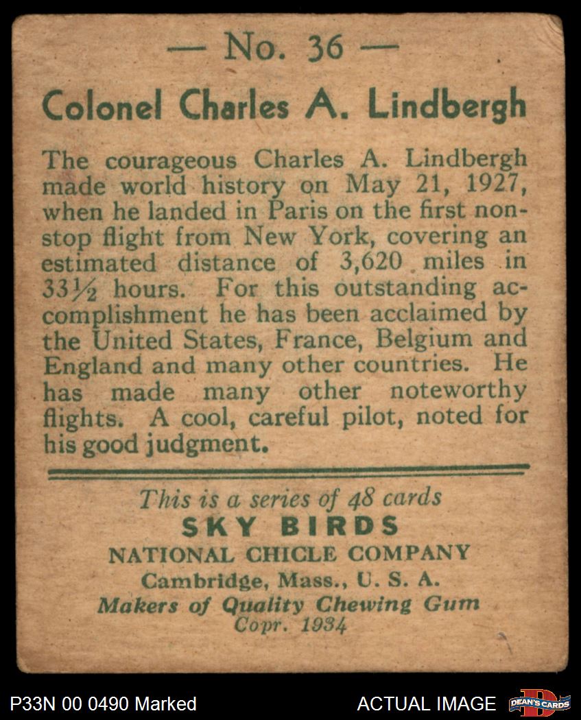 1934 National Chicle Sky Birds #36 Can read series of 48 or 144 cards on Back Charles Lindbergh 1 - POOR