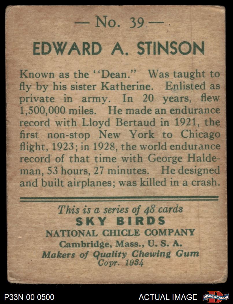 1934 National Chicle Sky Birds #39 Edward Stinson