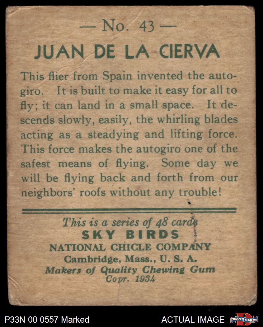 1934 National Chicle Sky Birds #43 Juan De La Cierva