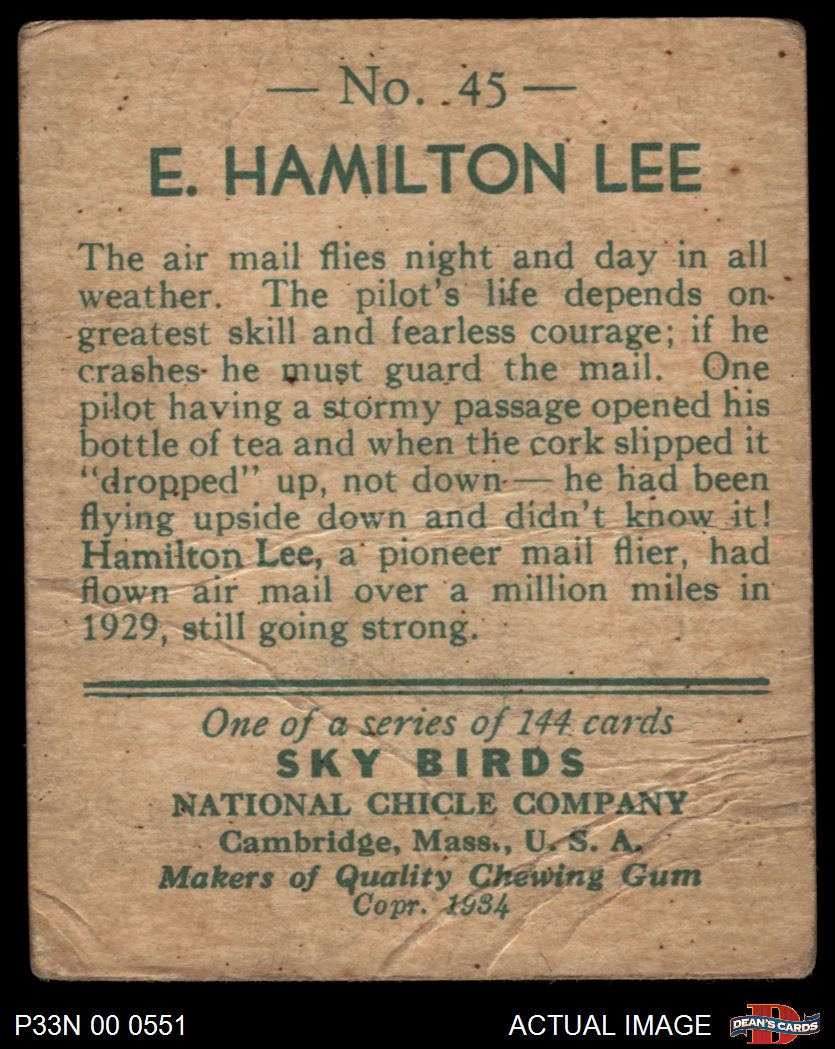 1934 National Chicle Sky Birds #45 Can read series of 48 or 144 cards on Back Hamilton Lee 1 - POOR