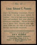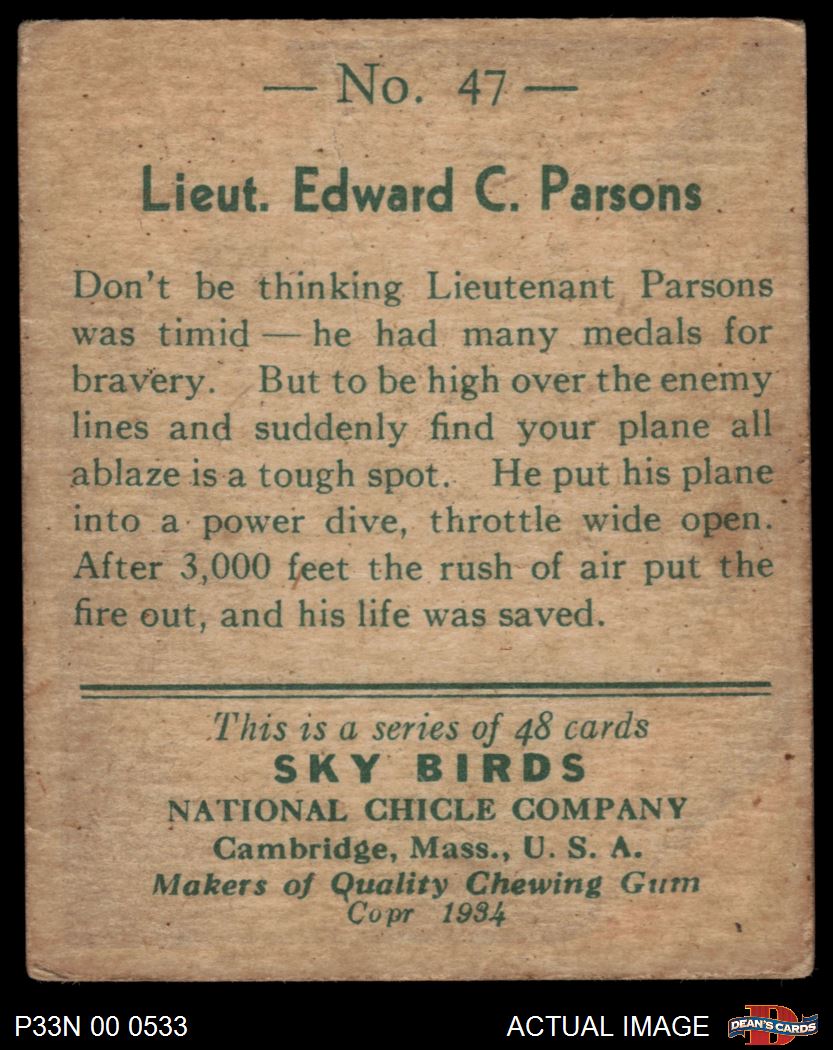 1934 National Chicle Sky Birds #47 Can read series of 48 or 144 cards on Back Edward Parsons 1 - POOR