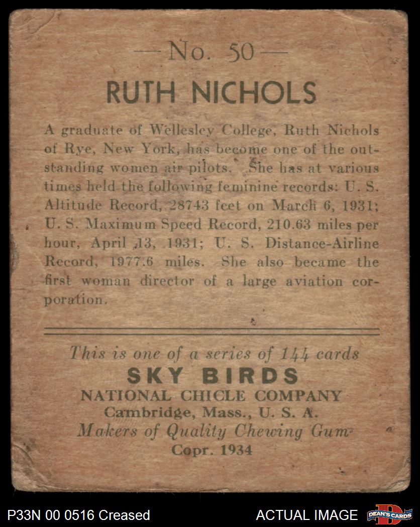 1934 National Chicle Sky Birds #50 Ruth Nichols 2 - GOOD