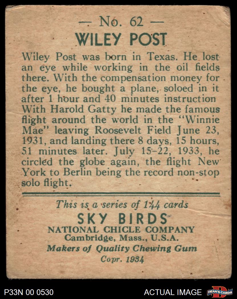 1934 National Chicle Sky Birds #62 Wiley Post