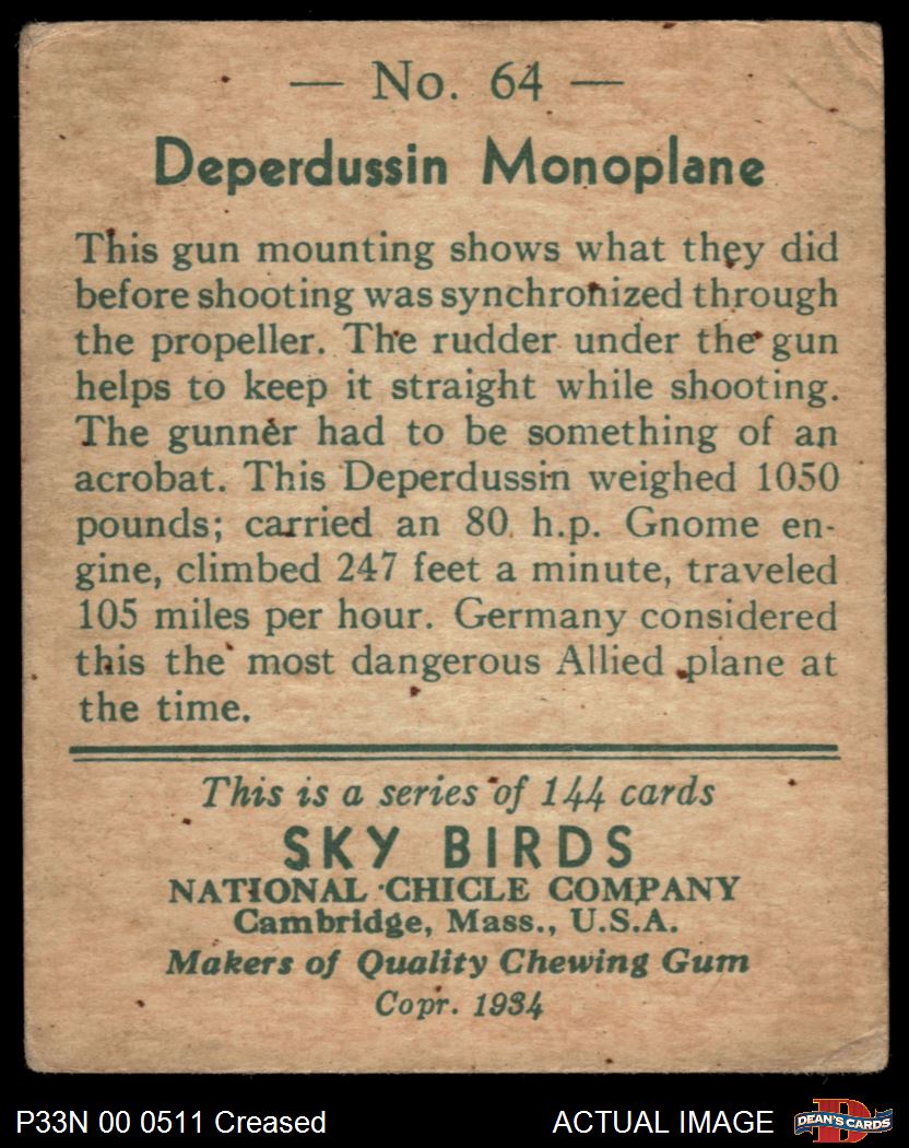 1934 National Chicle Sky Birds #64  Deperdussin Monopl Front Thumbnail