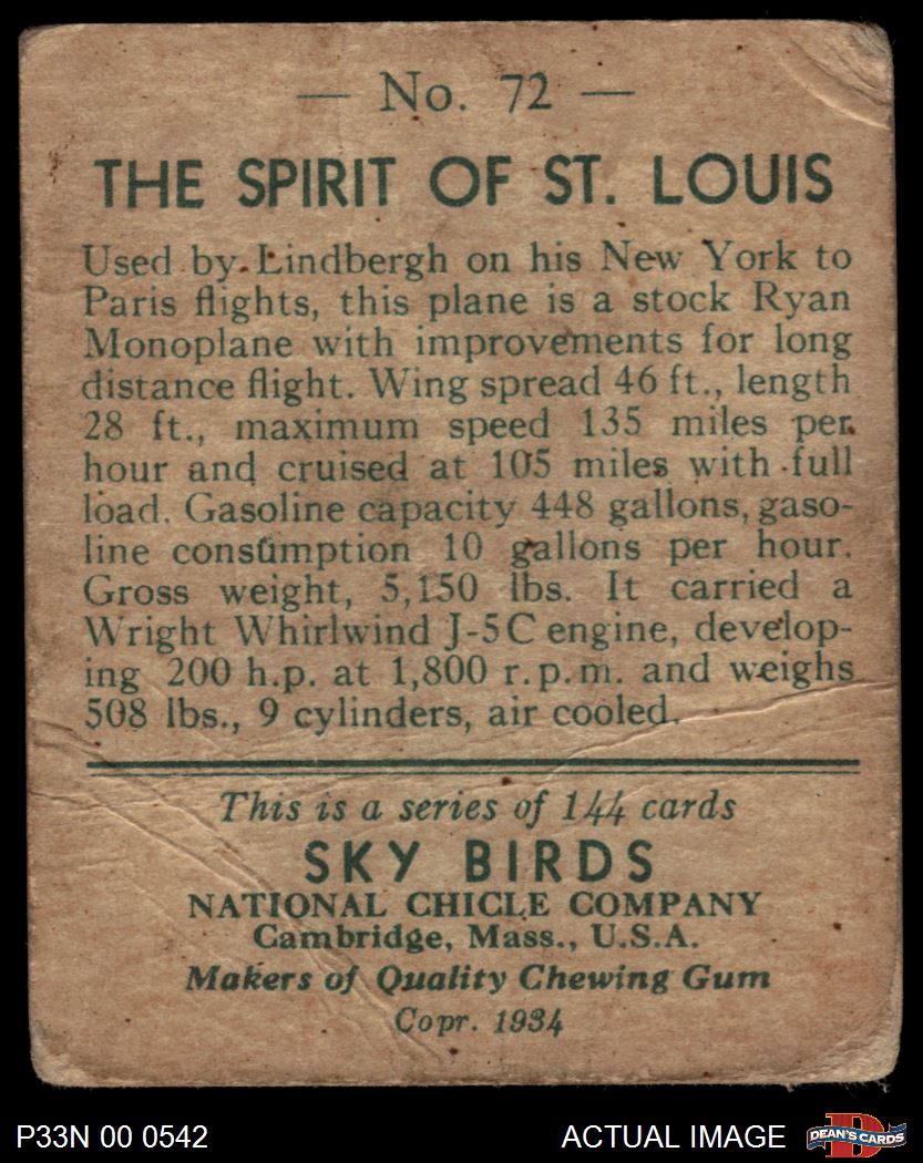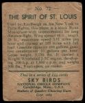 1934 National Chicle Sky Birds #72 Spirit of St Louis