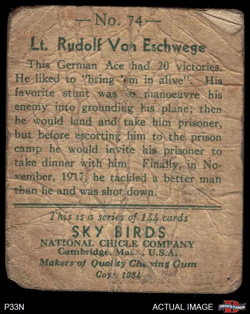 1934 National Chicle Sky Birds #74 Lt Von Eschwege AUTHENTIC