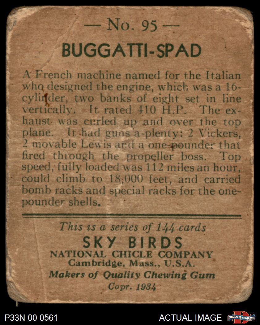 1934 National Chicle Sky Birds #95 Buggatti-Spad AUTHENTIC