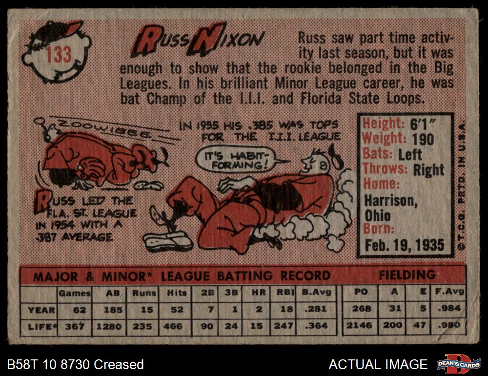 1958 Topps #133 Russ Nixon Front Thumbnail