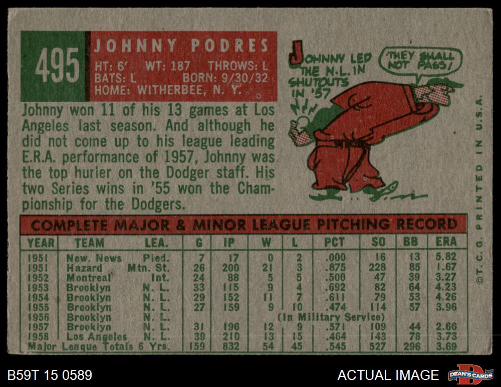 1959 Topps #495 Johnny Podres 4 - VG/EX