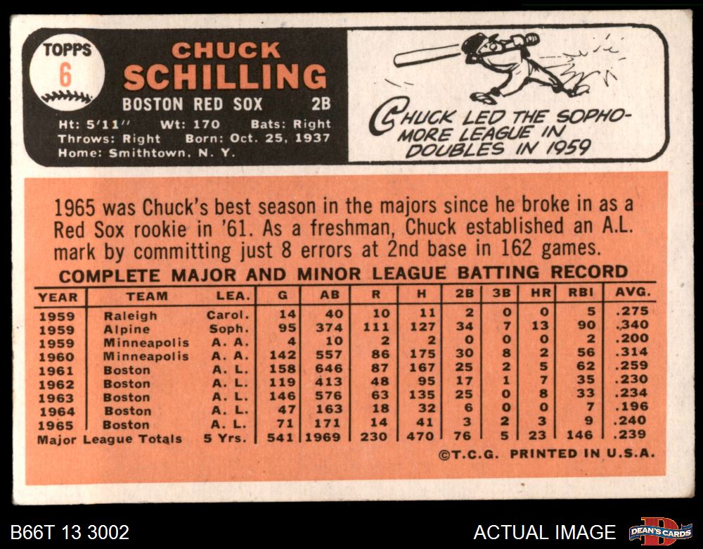1966 Topps #6 Chuck Schilling 3 - VG