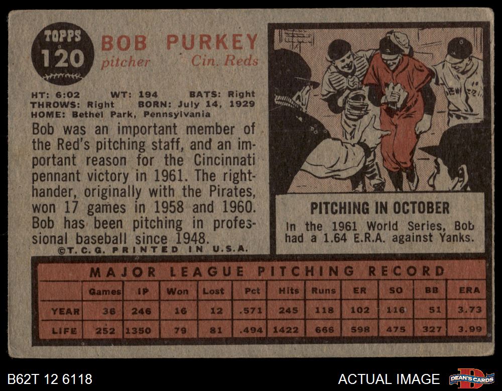 1962 Topps #120 NRM Bob Purkey 1 - POOR