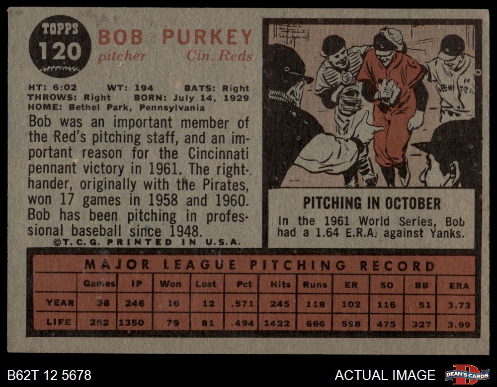1962 Topps #120 NRM Bob Purkey 2.5 - GD+