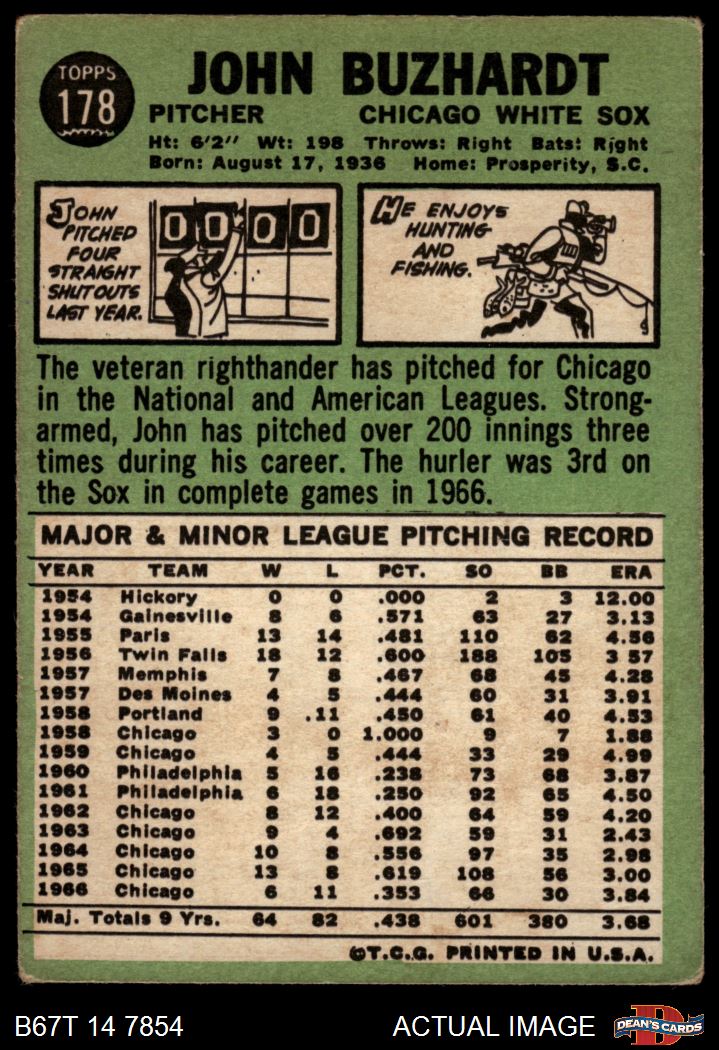 1967 Topps #178 John Buzhardt 1.5 - FAIR