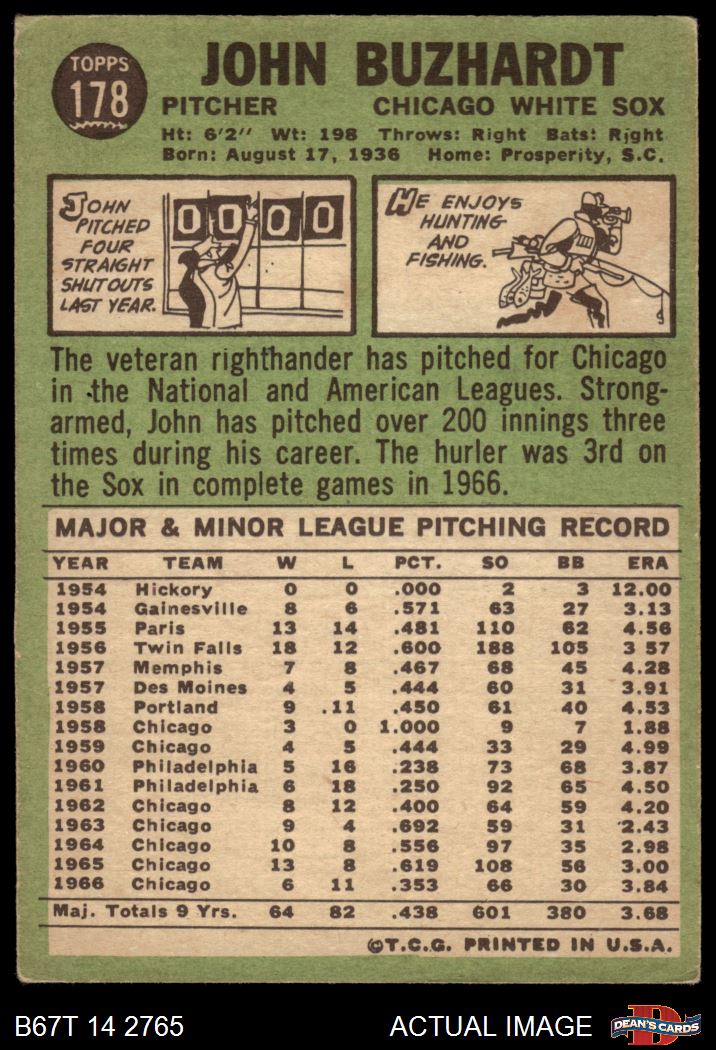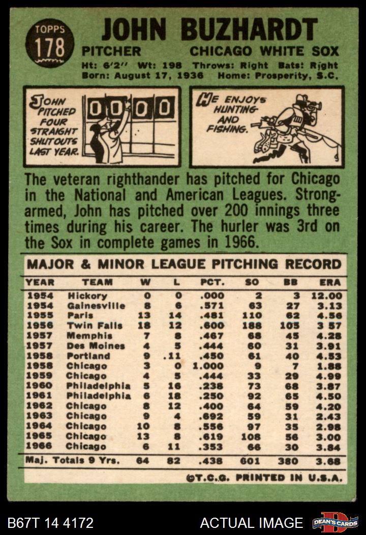1967 Topps #178 John Buzhardt 4 - VG/EX