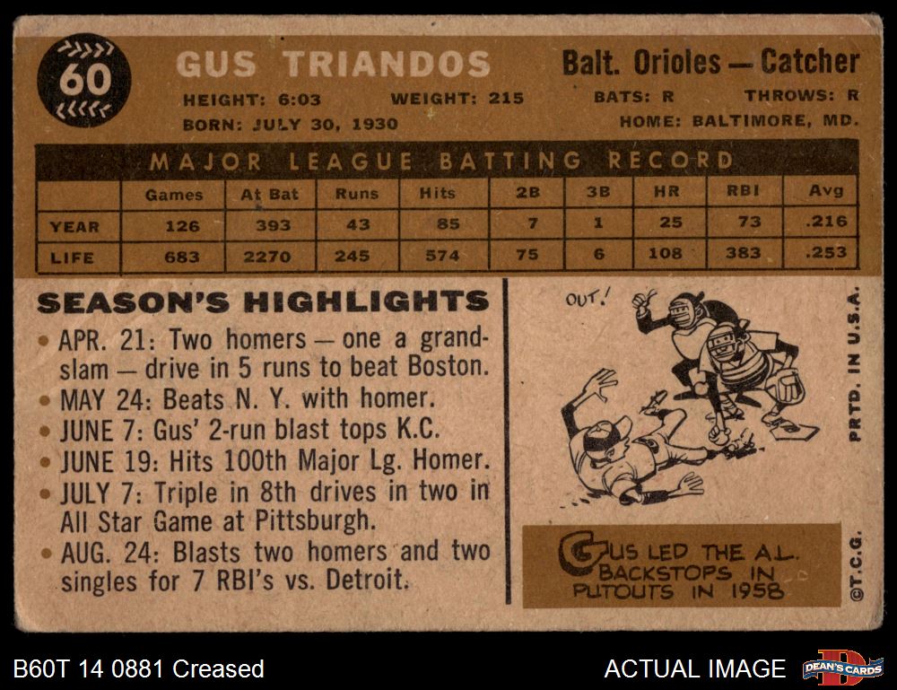 1960 Topps #60 Gus Triandos