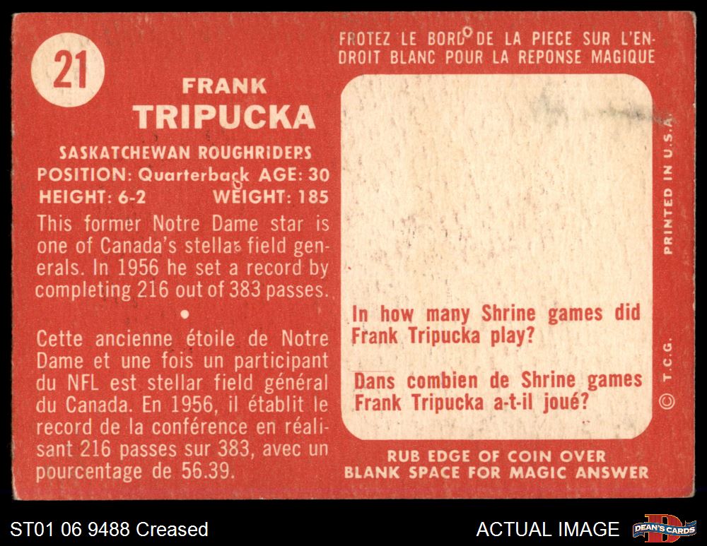 1958 Topps CFL #21 Frank Tripucka 2 - GOOD