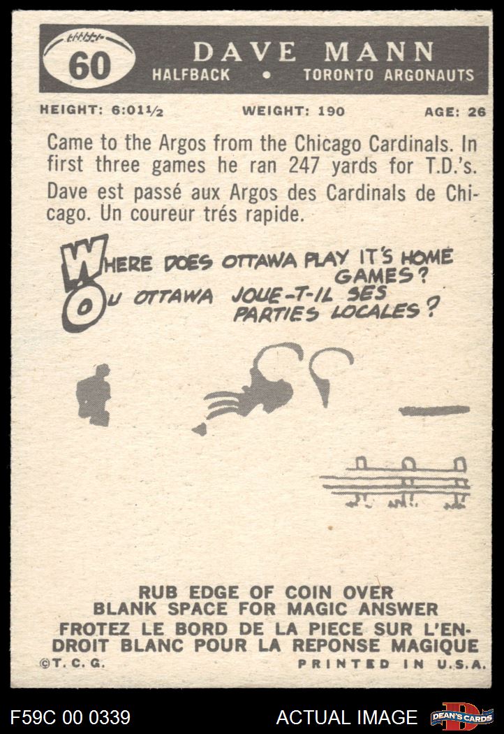 1959 Topps CFL #60 Dave Mann 5 - EX