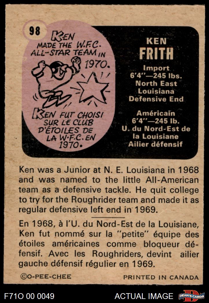 1971 O-Pee-Chee CFL #98 Ken Frith