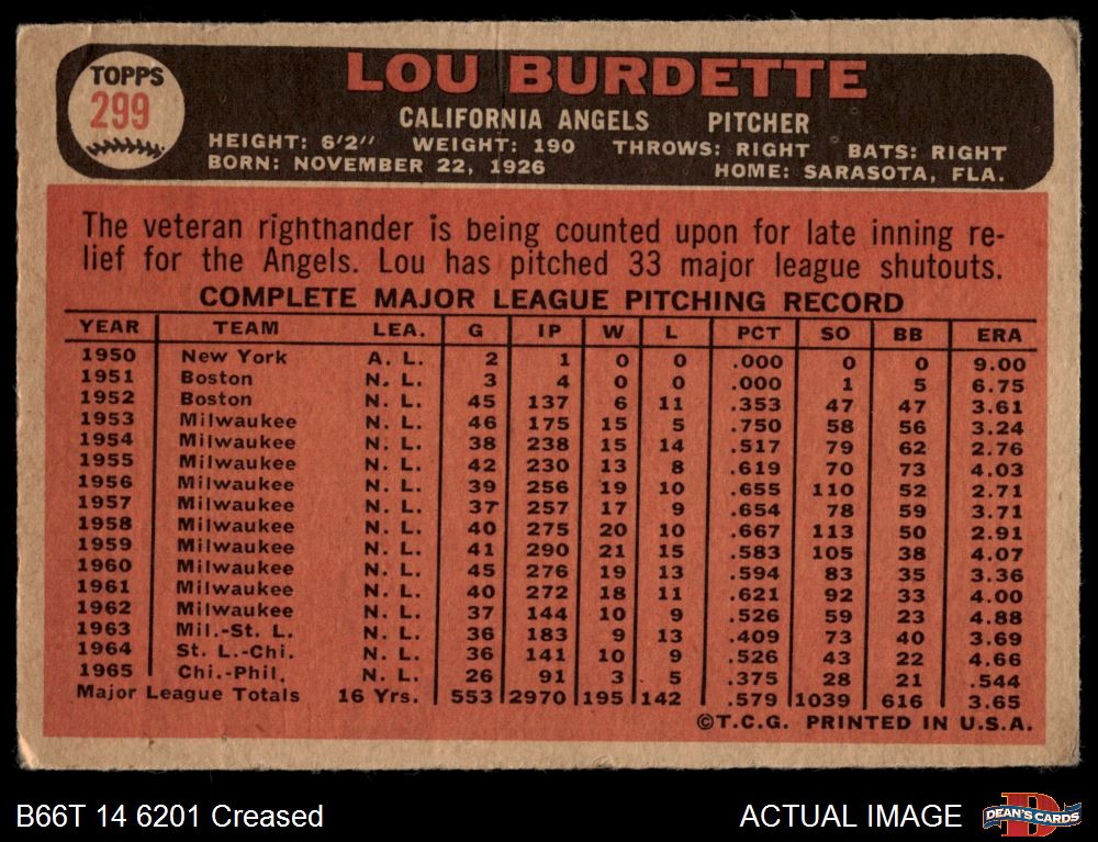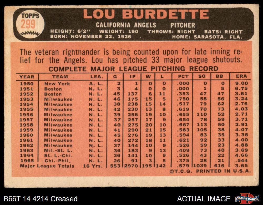 1966 Topps #299 Lew Burdette 2 - GOOD