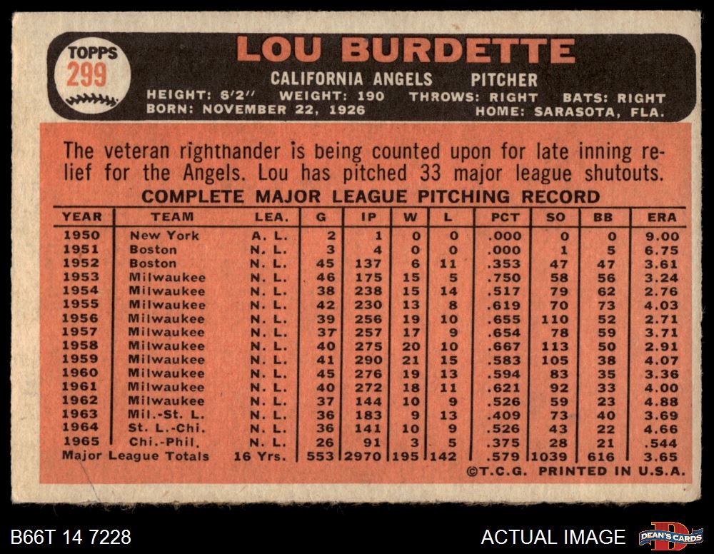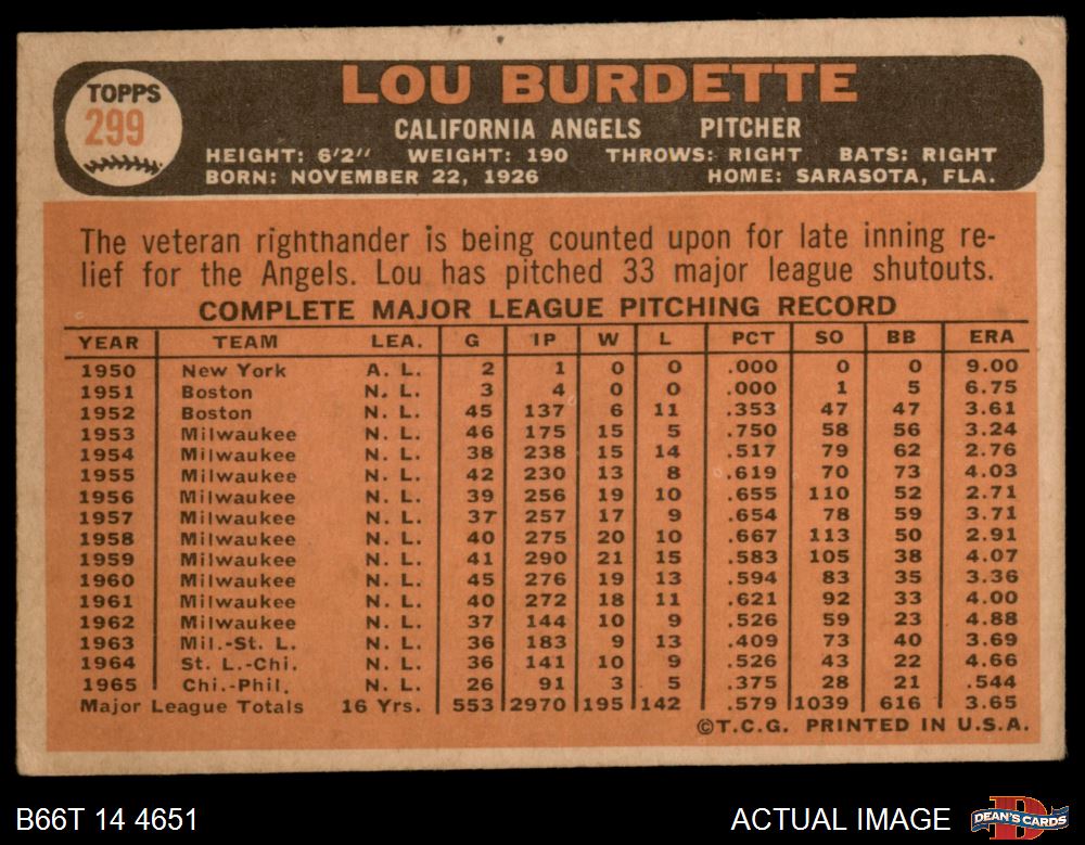 1966 Topps #299 Lew Burdette Front Thumbnail