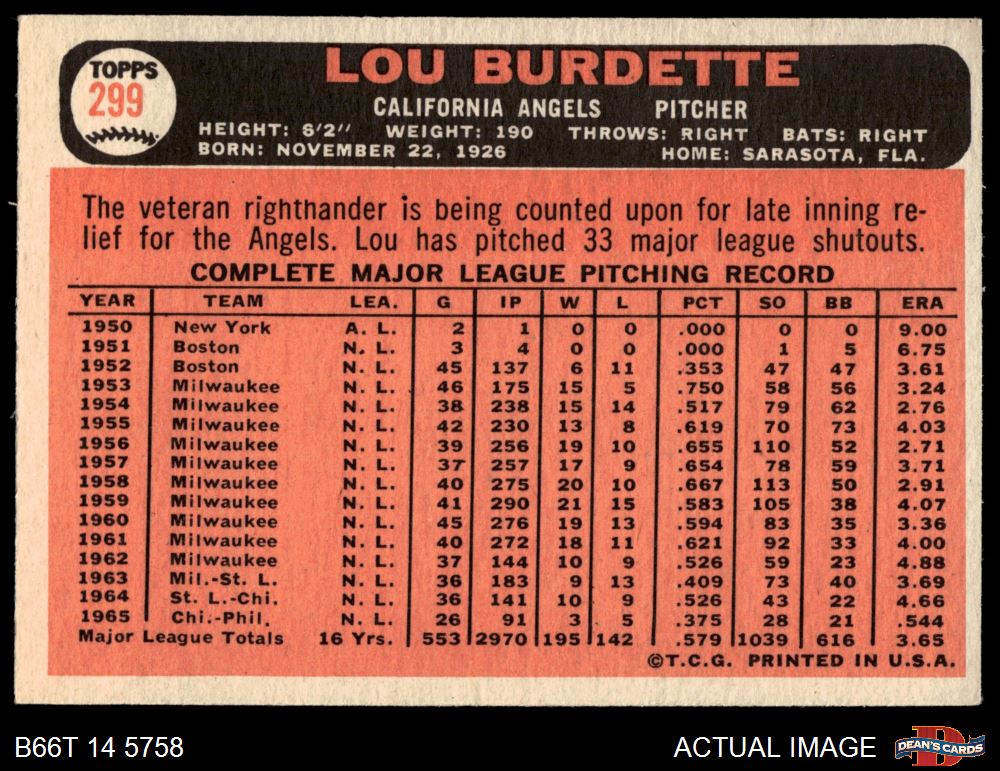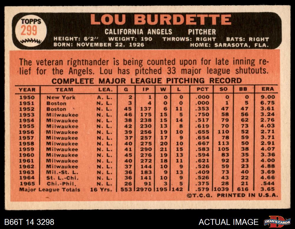1966 Topps #299 Lew Burdette 4 - VG/EX