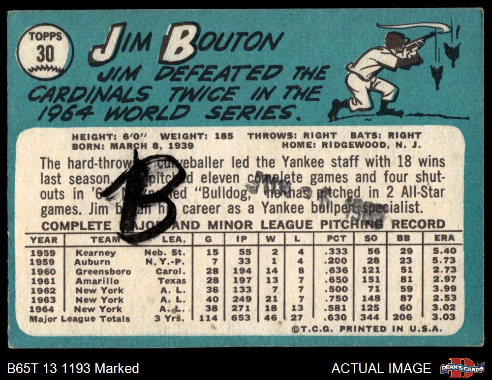 1965 Topps #30 Jim Bouton 1.5 - FAIR