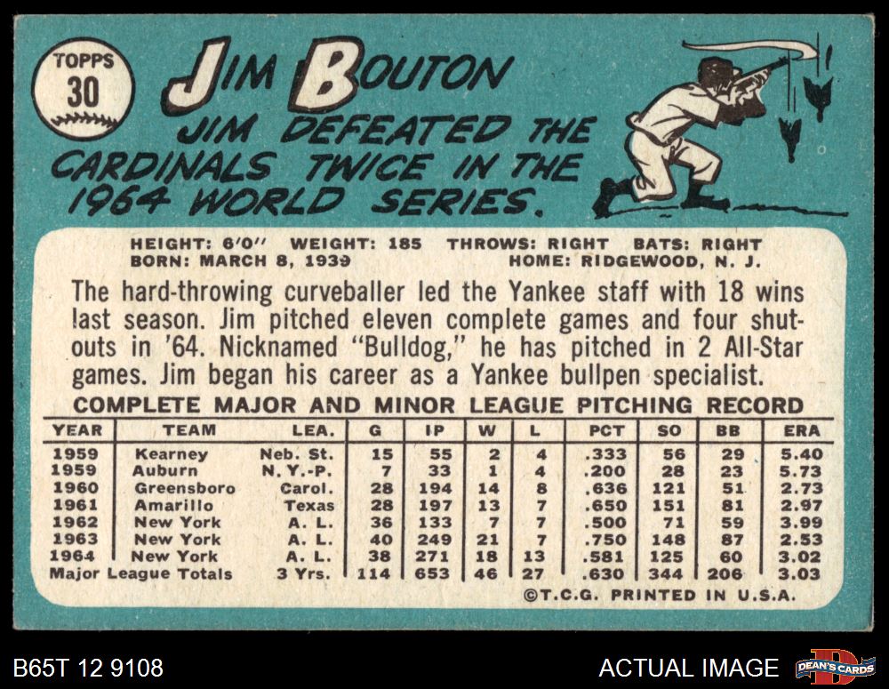 1965 Topps #30 Jim Bouton 4 - VG/EX