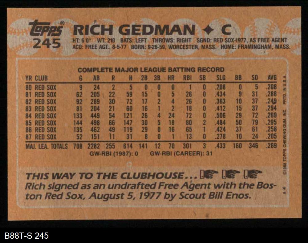 1988 Topps #245 Rich Gedman 8 - NM/MT