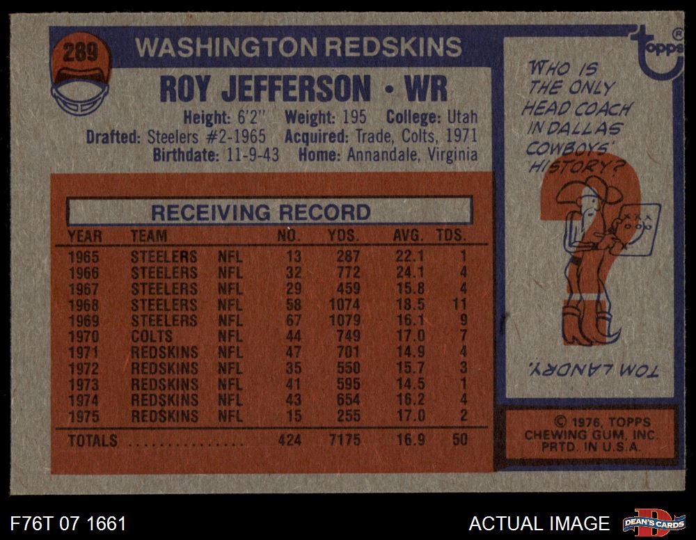 1976 Topps #289 Roy Jefferson 4 - VG/EX