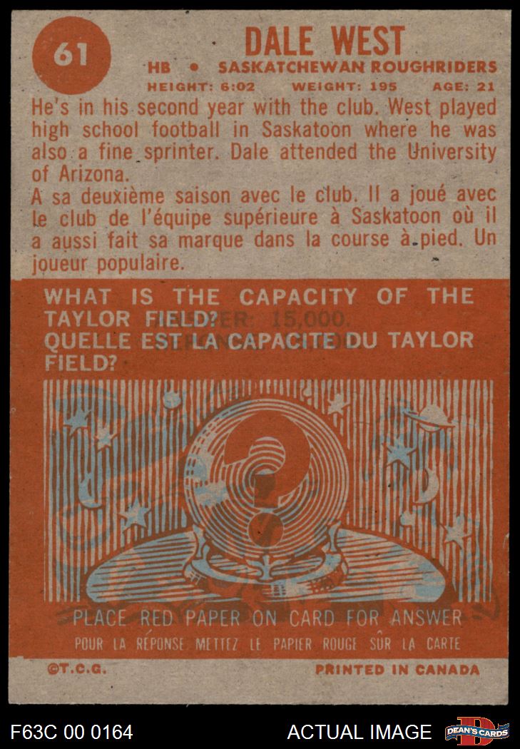 1963 Topps CFL #61 Dale West 6 - EX/MT